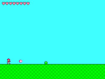 Eric: Eric is a male humanoid robot with light skin, bright-pink "wings haircut", blue eyes, and bright-pink forearms with white hands (Eric's bright-pink forearms with white hands can turn into bright-pink arm cannons). Eric wears a bright-pink sleeveless polo neck, white shorts with a blue belt, and bright-pink shoes with white socks. Eric can shoot plasma out of his arm cannons. Eric's plasma can kill normally-sized green slimes in one hit. However, Eric's plasma must kill bigger green slimes in two hits instead of one.